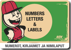 kiinnitettynä tuotteisiin. Numeroiden, kirjaimien, merkkien, logojen, sponsori näkyvyyksien kiinnittäminen asiakkaan